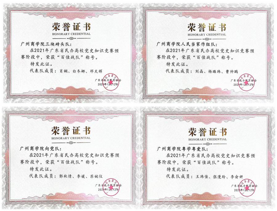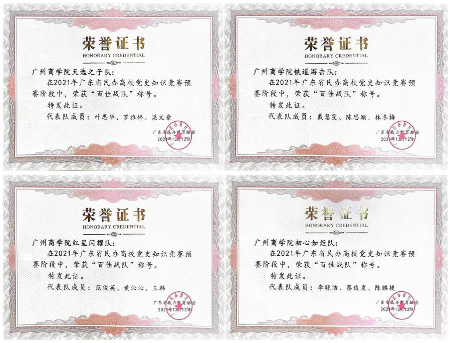 为深入推进我校的党史学习教育工作,引导广大师生“学史明理、学史增信、学史崇德、学史力行”,达到“学党史、悟思想、办实事、开新局”的目的,让师生更加深入了解中国共产党走过的伟大历程和取得的光辉成就。今年11月以来,我校共组织了264支师生队伍积极参加广东省民办高校党史知识竞赛。经过激烈角逐,我校有八支师生队伍获得团体奖项“百佳战队”称号;1人荣获“学习达人”荣誉称号,我校荣获“优秀组织奖”。