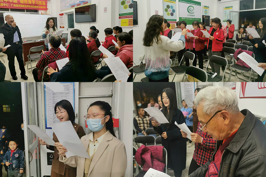 此次活动是继续教育学院在深入了解社区居民需求的前提下,联合马克思主义学院博雅教研室,为新龙镇麦村居民专门定制的红歌学唱主题活动。活动于11月17日晚,在麦村村委正式开展,由博雅教研室沈玉华老师担任授课讲师。沈老师从发音技巧、气息运用方面为麦村合唱团的成员们进行了通俗易懂的讲解,随后带领大家练习歌曲《歌唱祖国》。现场气氛活跃,大家学习热情高涨,学员们纷纷表示获益匪浅,并希望以后可以经常开展此类活动。