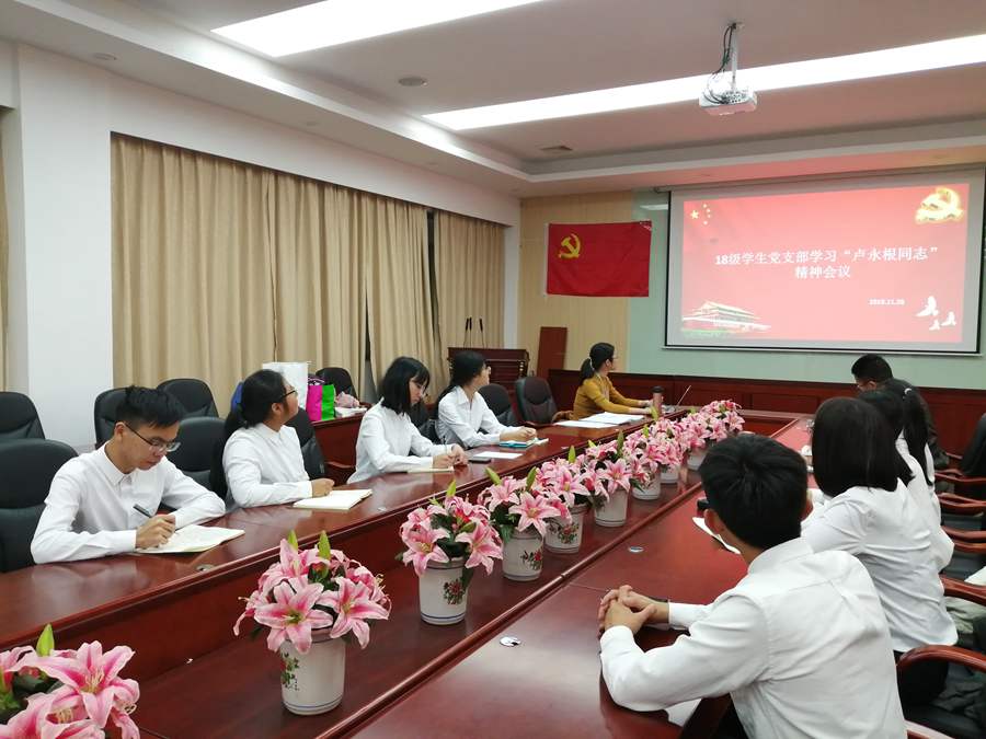 为充分发挥先进典型和示范带头作用,激励和引导学生党员坚定信念,对党忠诚,奋发有为,无私奉献,发挥先锋模范作用,2019年11月28日,管理学院18级学生党支部在第二行政楼208会议室开展学习“卢永根同志”精神活动。参加此次会议的有管理学院党总支书记汪椿东、18级学生支部书记李文娣及全体预备党员。本次会议由李文娣主持。