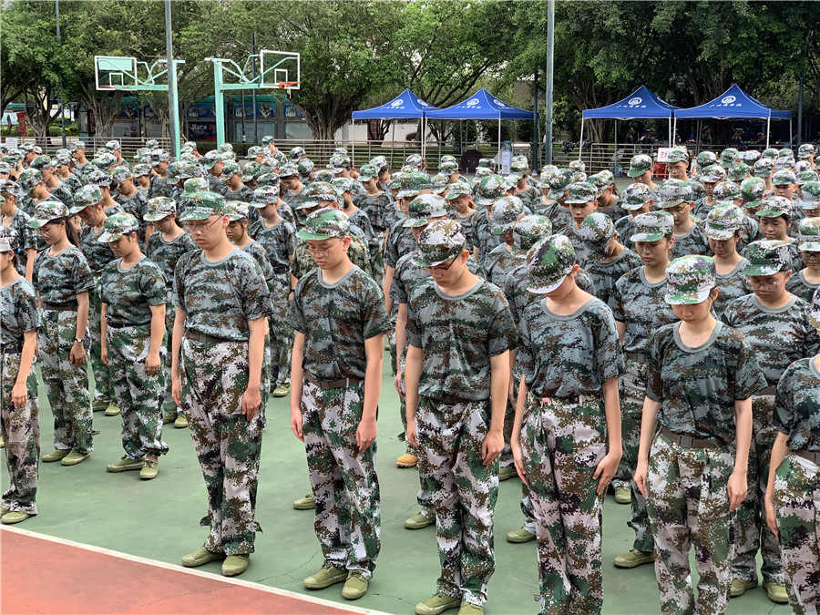 欧莹亲自下到2020级新生军训场地组织默哀仪式并朗读信件