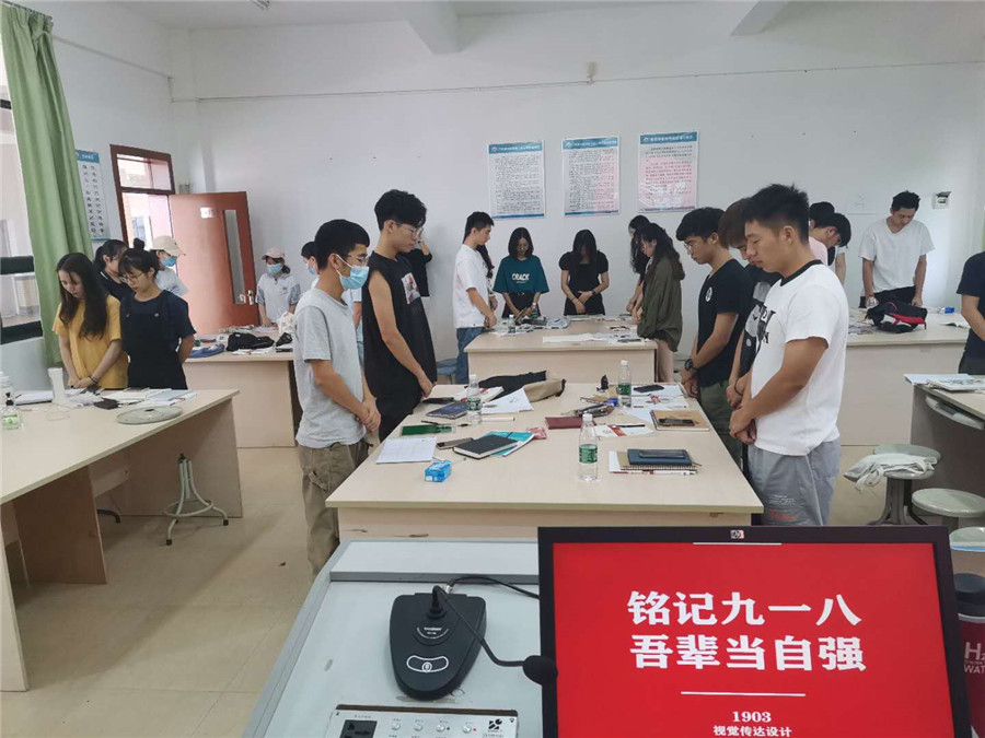 线下,党总支书记欧莹亲自下到2020级新生军训场地组织默哀仪式,朗读《九一八,国耻日,我们永远不应淡忘!——致艺术设计学院全体师生的一封信》,强调全体学生要铭记历史,缅怀先烈,吾辈当自强不息。其他年级,在辅导员的带领下,以宿舍、以楼层、以课室、以班级为单位开展纪念默哀活动和集中朗诵学院党总支、学院团委联合撰写的致艺术设计学院全体师生的一封信。活动参与面广,教育意义深远。既传播了红色文化,也激起了广大师生的强烈爱国热情。