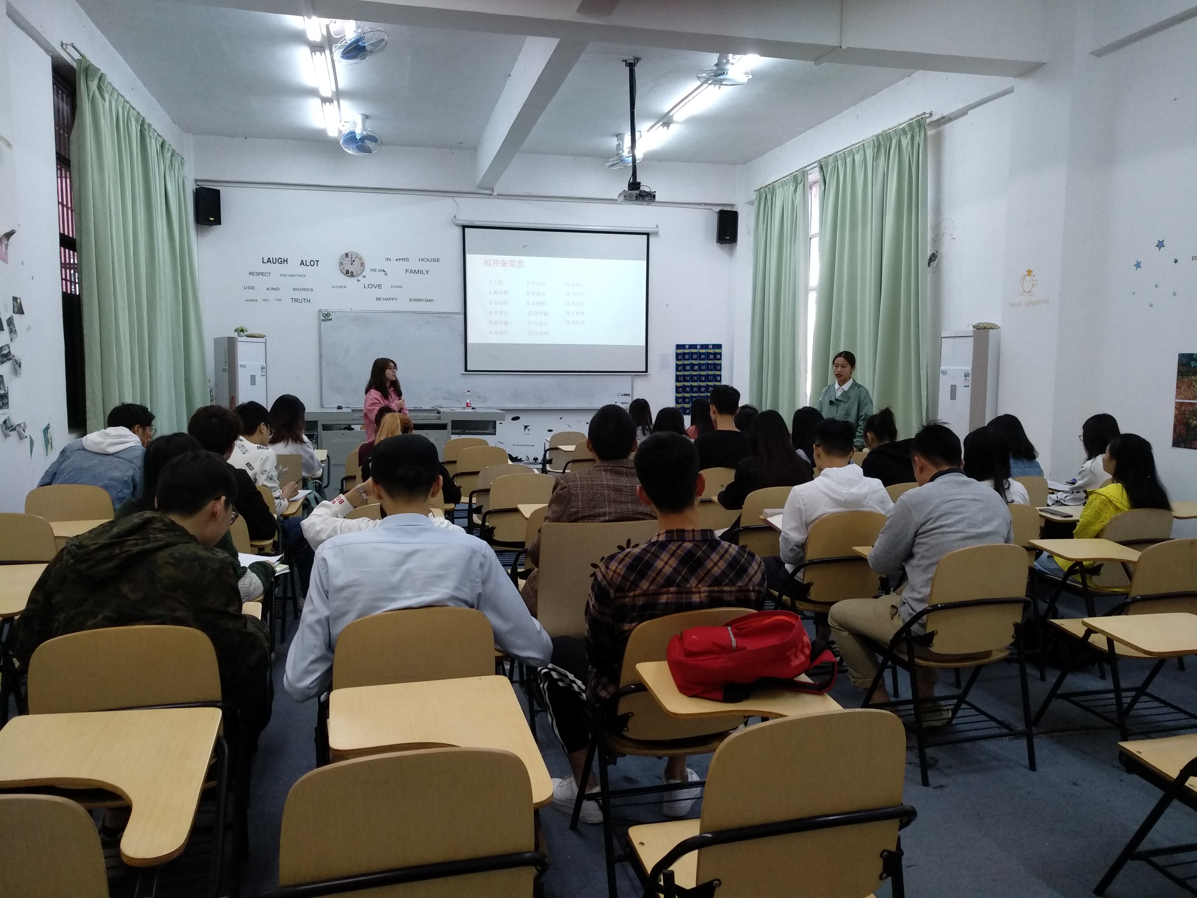 最后由党支部书记钟梦娜宣读支部党员大会决议,同意接收王群、黄诗静、巫洁纯、欧美良、翁国鑫、付逸诗、许扬苗、郑嘉滢、刘熠熠、詹丹敏、古雯文、张卓鸣、翁嫚红、刘彤欣、周昊玮、丘梓唯、苏经周十七名同志为中国共产党预备党员。他们的加入给支部增添了新的血液和新的活力,有利于党员在群众中更好的发挥表率作用,产生积极影响,相信新党员一定会成为党的新生力量,为党和人民做出自己应有的贡献。