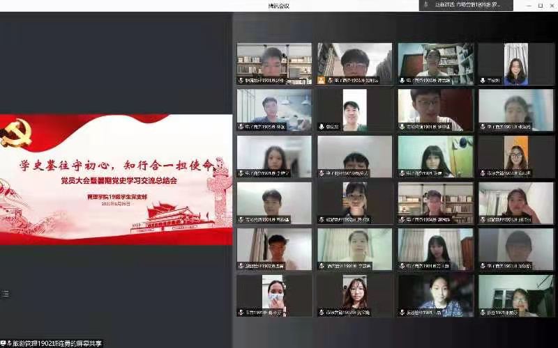 为引导广大党员同志学党史,强信念,跟党走,将深入学习贯彻落实习近平总书记“七一”重要讲话精神贯穿到党史学习教育全过程各方面,管理学院2019级学生党支部于8月26日晚在腾讯会议召开党员大会暨暑期党史学习教育交流总结会,支部书记蔡俊发、副书记李俞妍及罗显雄等31名预备党员参加会议。