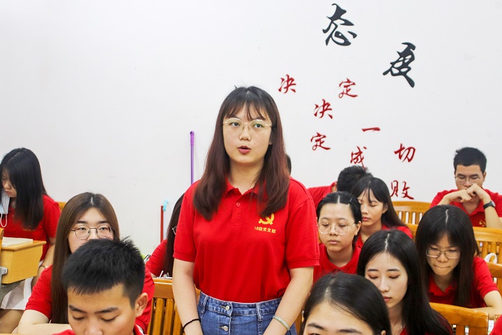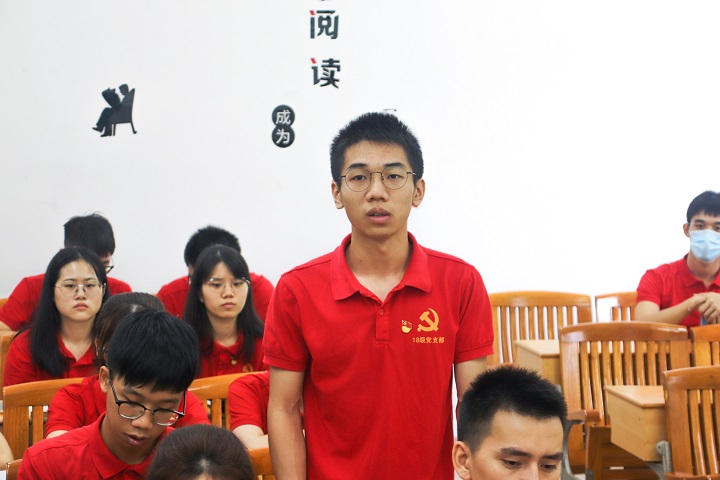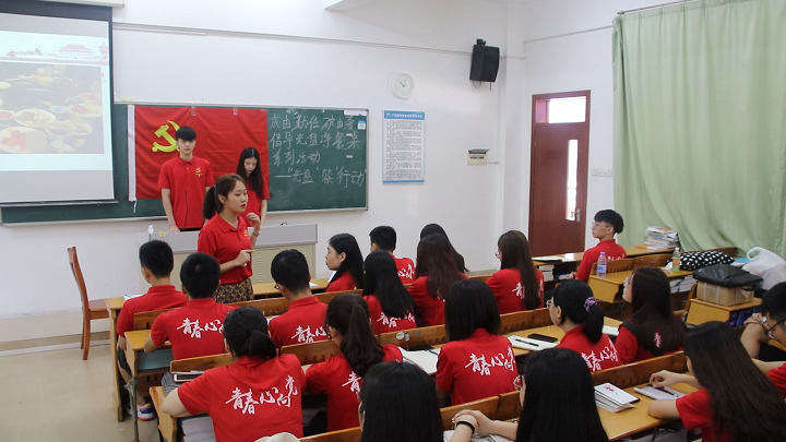 活动伊始,全体党员进行“拒绝浪费”宣誓,激励每一位党员牢记党的宗旨,充分发挥党员带头作用。随后全体党员观看了关于餐饮浪费行为的采访类以及新闻类的视频, 全体党员围绕“杜绝浪费、光盘行动”,结合自身学习、工作和生活经历交流了心得体会。其中杨婷婷、李芷珊和张锐楷观看视频后表达了自己的想法,特别是党员李芷珊同学谈到浪费现象不禁热泪盈眶,将自己的切身体会颇有感触地表达出来,引起了在场党员们的共鸣。活动的第二项是党员填写匿名电子问卷对于学校进行“光盘行动”的想法与建议,学生党员在深入了解学生群体后作出对学校执行“光盘行动”的建议,推动学校“光盘行动”更好地实施。
