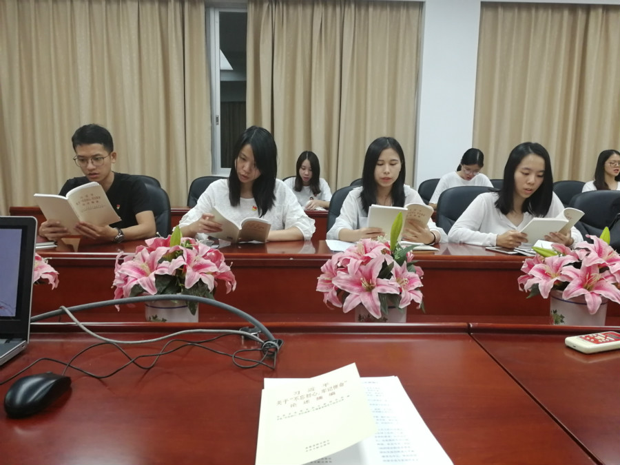会议开始,全体起立奏唱国歌。接着全体朗读第四章“坚定理想信念”,并认真阅读书本。在分享交流会上,曾霖、陈海思、李丹娜等十名同志从铭记历史、坚定信念、不忘初心等多方面对书本进行解读,认真阅读习近平关于“不忘初心,牢记使命”的论述摘编,并结合实际分享阅读感悟与心得。