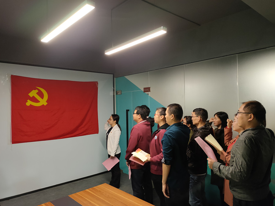 会上,全体党员在欧洁梅带领下,重温了入党誓词。