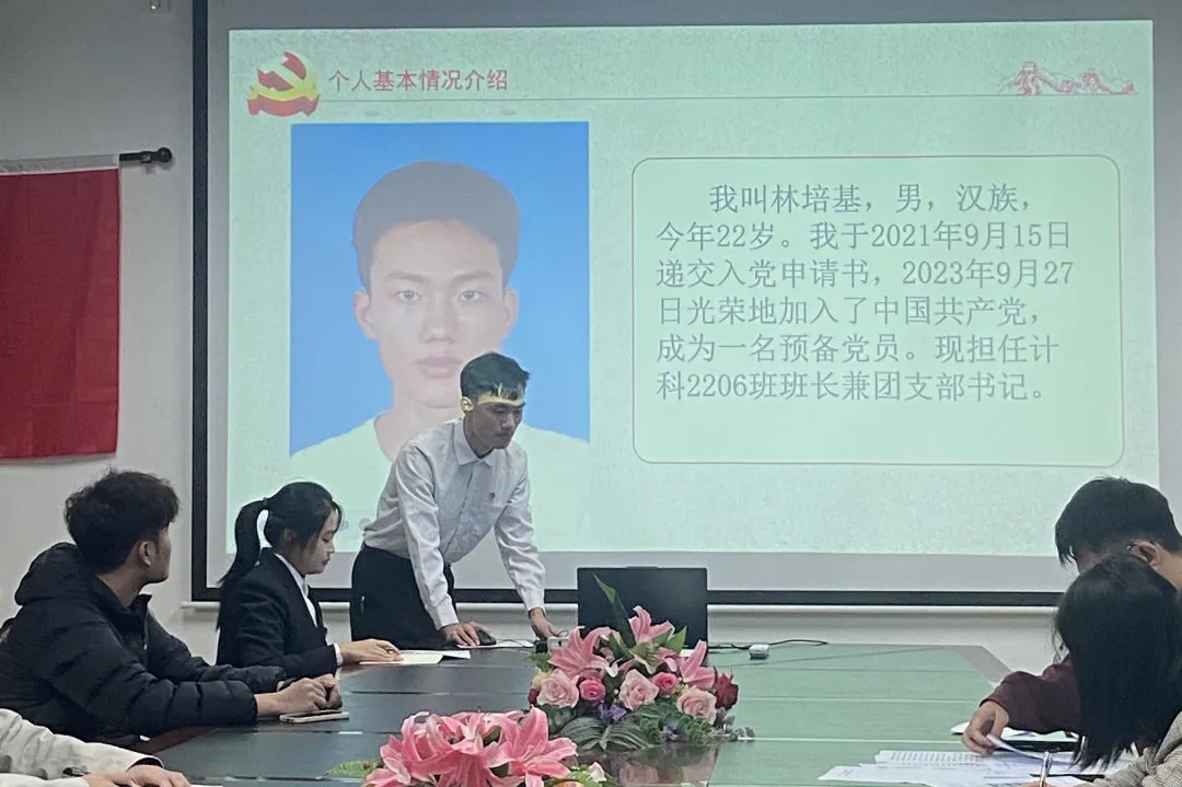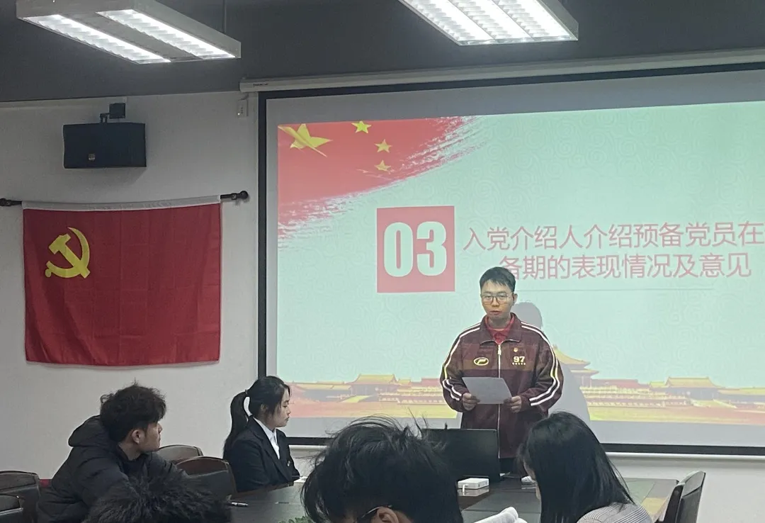 钟晓艳、林培基2名同志从思想、学习、工作和生活四个方面向党组织汇报自己一年来的情况,并表示会时刻以党员的标准更加严格要求自己,不断努力。入党介绍人杨艳美、王来祥对钟晓艳、林培基2名预备党员在预备期间的政治思想、学习成绩、为师生服务的情况进行阐述,并同意其按期转正。王来祥报告党支部委员会关于钟晓艳、林培基2名同志在预备期间的审查情况,认为以上2名同志在政治上时刻与党中央保持一致,已基本符合一名中共正式党员的条件,审查合格,同意钟晓艳、林培基2名同志按期转为正式党员,现各项材料齐全,可以提交支部大会讨论。